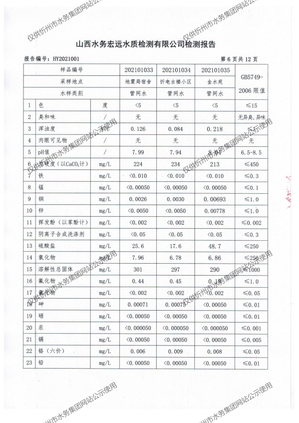 忻州城區(qū)公共供水水源水、出廠(chǎng)水、管網(wǎng)水、管網(wǎng)末梢水2021年1月份水質(zhì)信息公示