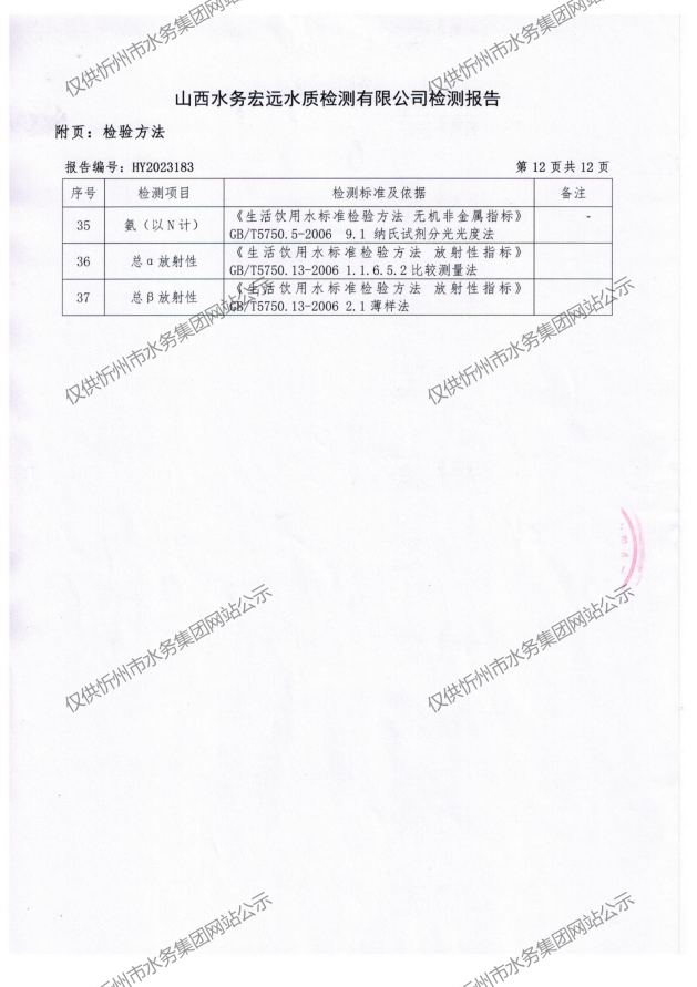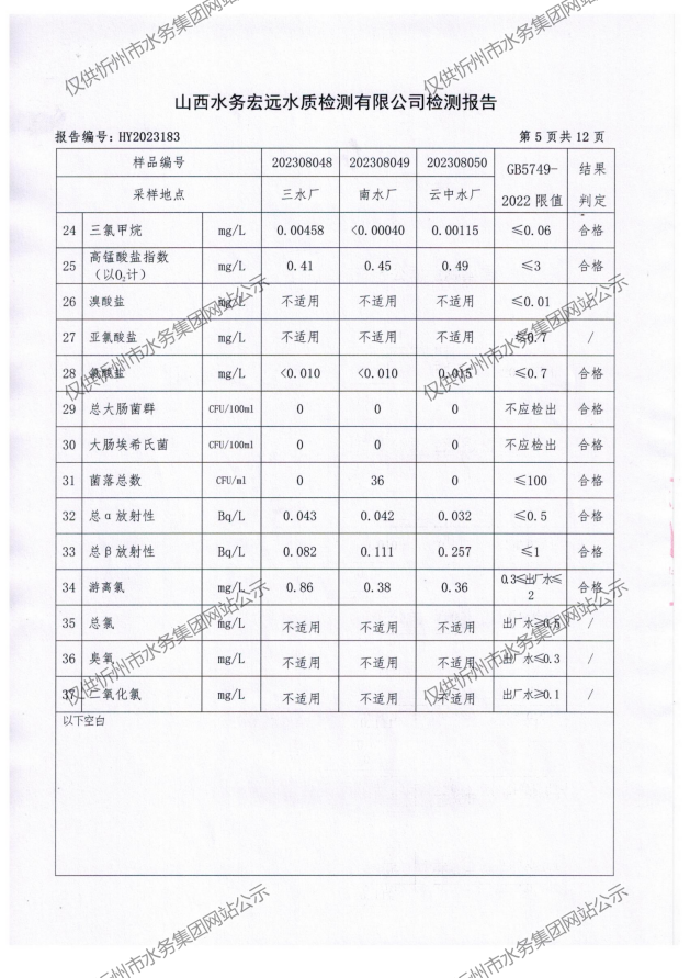忻州城區(qū)公共供水水源水、出廠水、管網(wǎng)水、管網(wǎng)末梢水2023年8月份水質信息公示